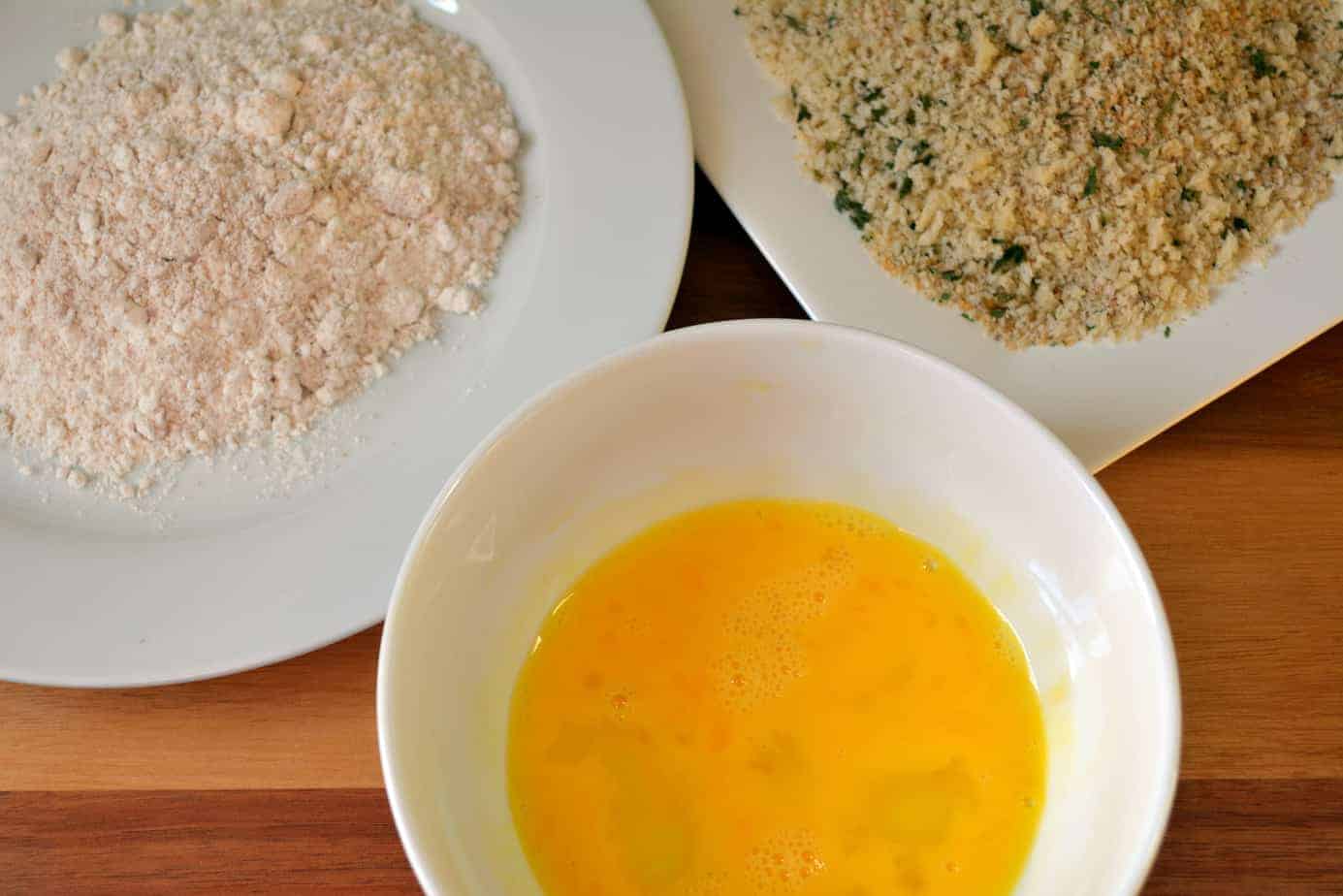 - In a third bowl, combine bread crumbs, panko, cheese, and spices.