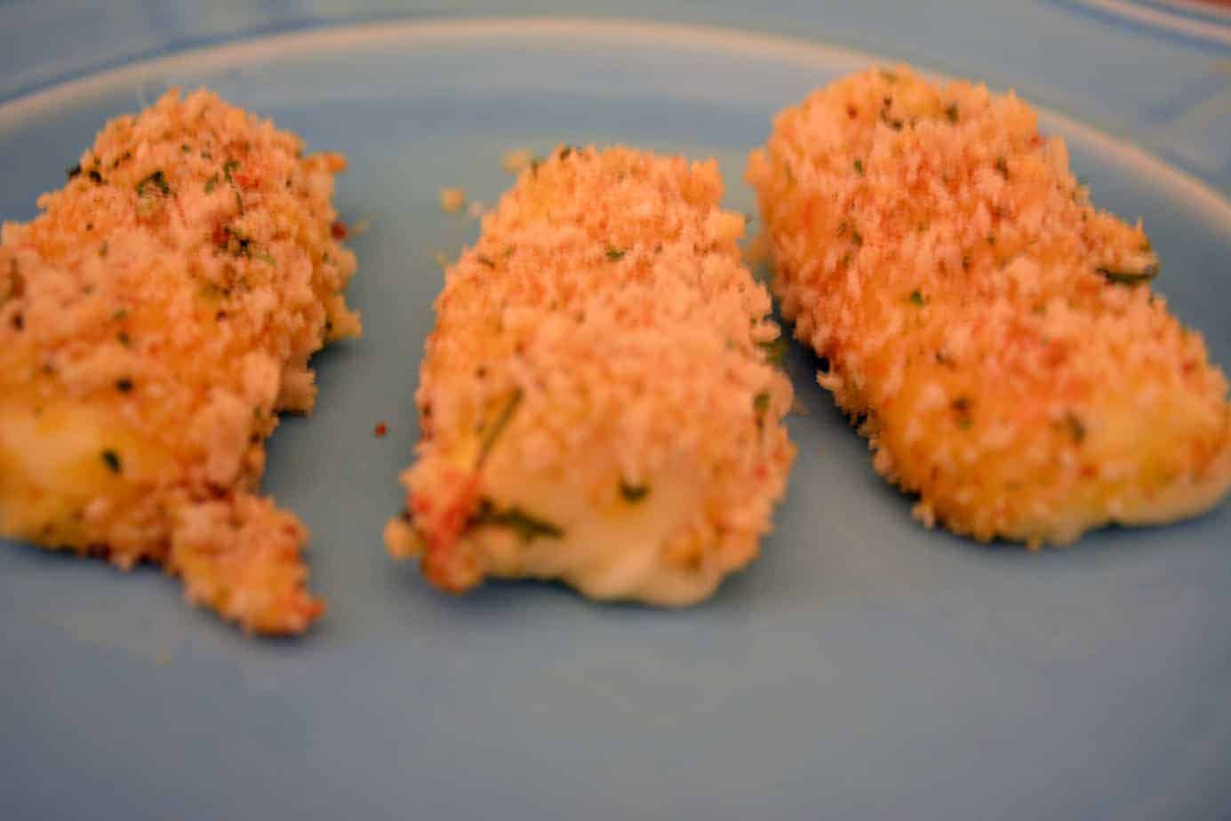The bread crumb coating is a mixture of regular bread crumbs and panko bread crumbs, which increase the crunch factor!